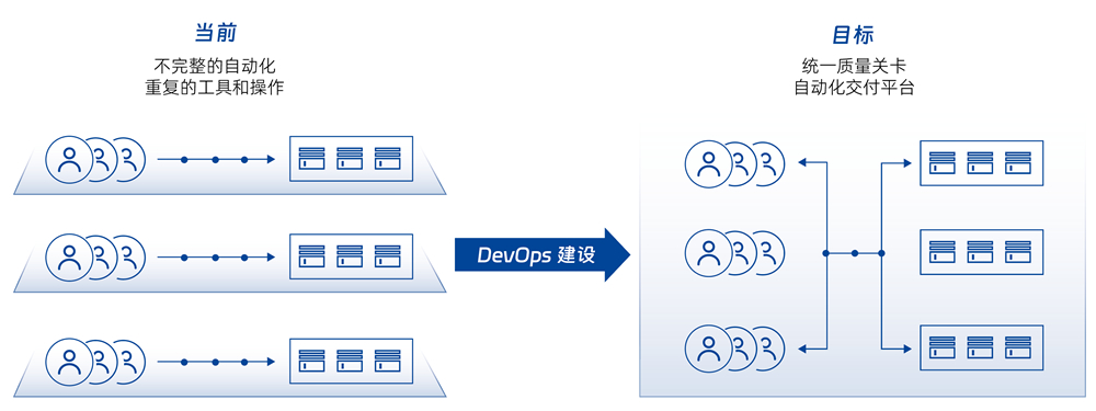 • 依赖手工或无关联的开源工具支撑交付过程。